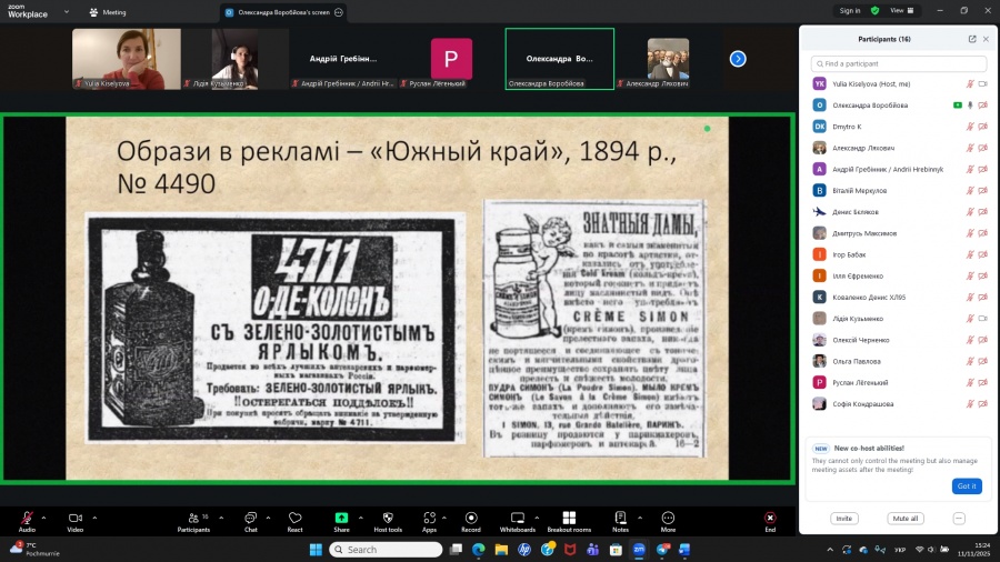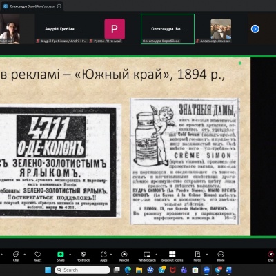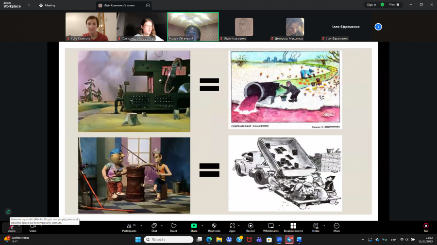 On November 11, a meeting of the Historiography, Source Studies, and Special Historical Disciplines Circle was held, dedicated to the specifics of analyzing visual sources and their informational potential. At the meeting, two presentations were delivered: first-year master’s student Oleksandra Vorobiova presented “Everyday Life in a Pretty Wrapper: Visual Images in Newspaper Advertisements at the Turn of the 19th–20th Centuries as a Source on the History of Kharkiv,” and fourth-year student Ruslan Lehenkyi presented “Soviet Cartoons of the 1960s–1980s as a Reflection of Their Historical Era.” After the presentations, a discussion took place regarding the functions of visual images in various sociocultural contexts and the methods used to study them.
