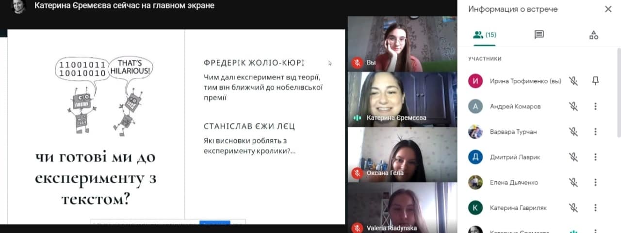 Майстер-клас «Контент-аналіз: як довірити комп’ютеру своє джерело», доповідачка викладач кафедри історії та мовознавства Українського державного університету залізничного університету К. А. Єремєєва, 18.05.2021