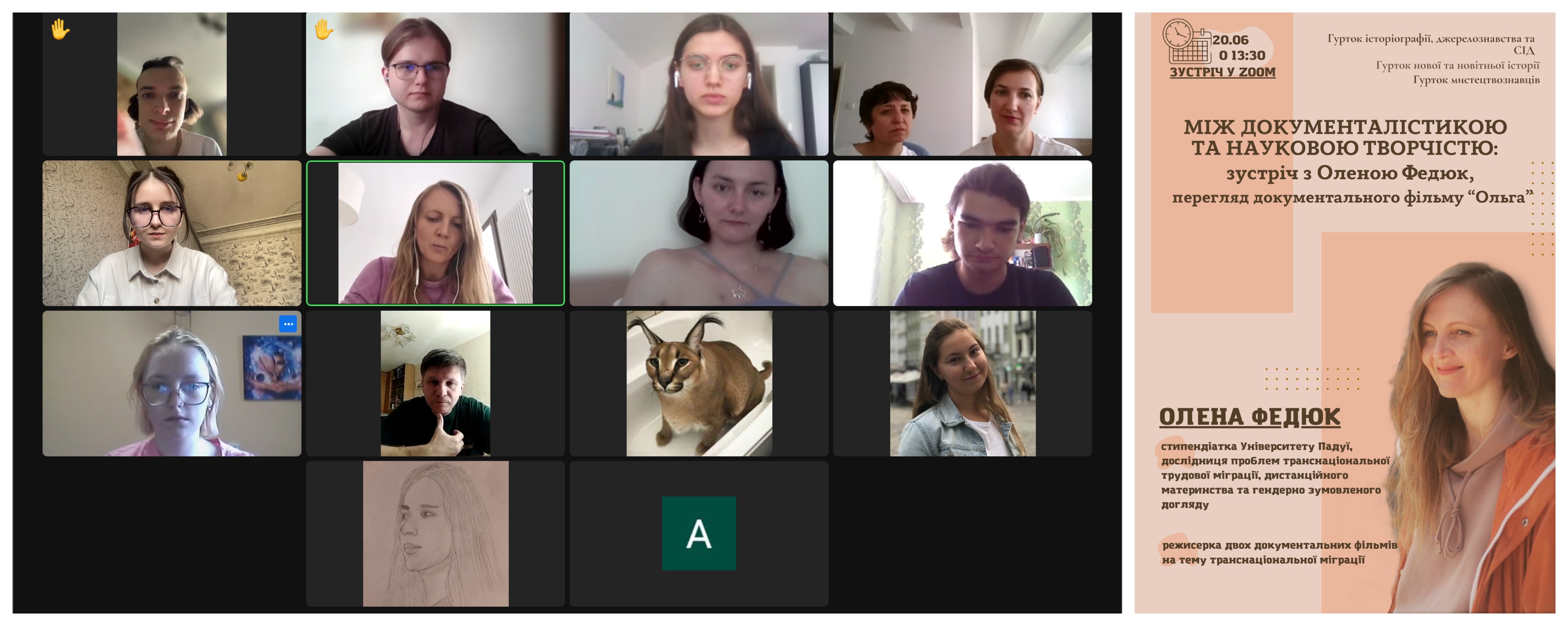 Зустріч з дослідницею української трудової міграції, режисеркою документальних фільмів Оленою Федюк, присвячена перегляду та обговоренню фільму «Італійський щоденник Ольги». 20.06.2023