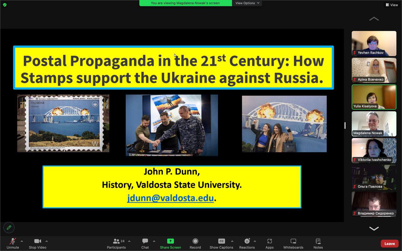 Зустріч з професором Університету штату Валдоста Джоном Даном "Пропагандистська філателія у ХХІ столітті: як марки допомагають Україні під час російсько-української війни" 22.11.2023