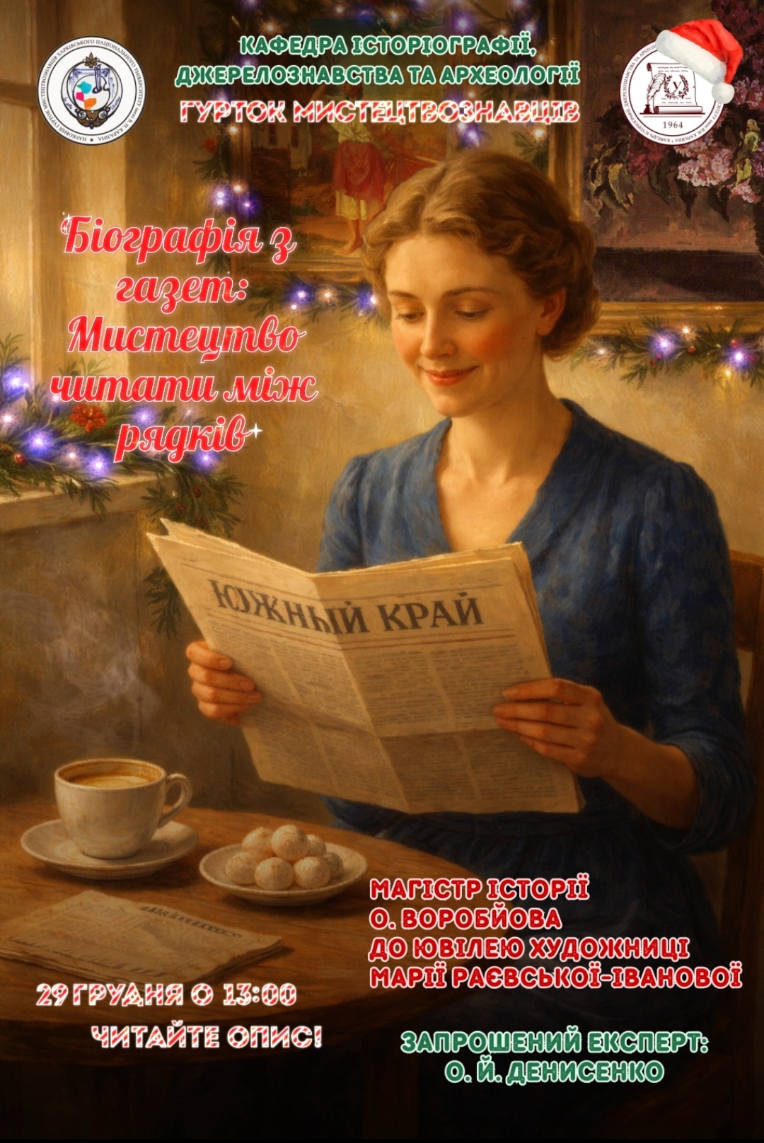 Засідання буде присвячено великій постаті в українському живописі – Марії Раєвській-Івановій! Ви дізнаєтесь про її значний внесок у вітчизняне мистецтво, важливі аспекти її життя, а також про неоціненний спадок, що вона залишила на своїх полотнах та у сфері мистецької освіти.