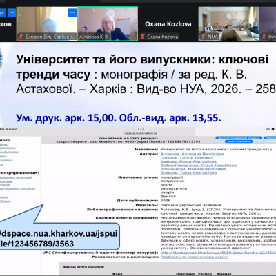 Під час конференції було презентовано книгу: Астахова К. В., Посохов С. І., Іванова О. А. та ін. Університет та його випускники: ключові тренди часу: монографія / за ред. К. В. Астахової. Харків: Вид-во НУА, 2026. 256 с.